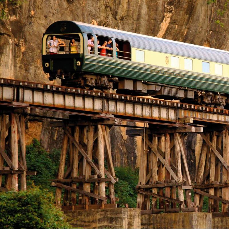• Yolculuk, göllerden ormanlara kadar muhteşem manzaralar sunar ve Kwai Nehri üzerindeki köprüyü geçer.