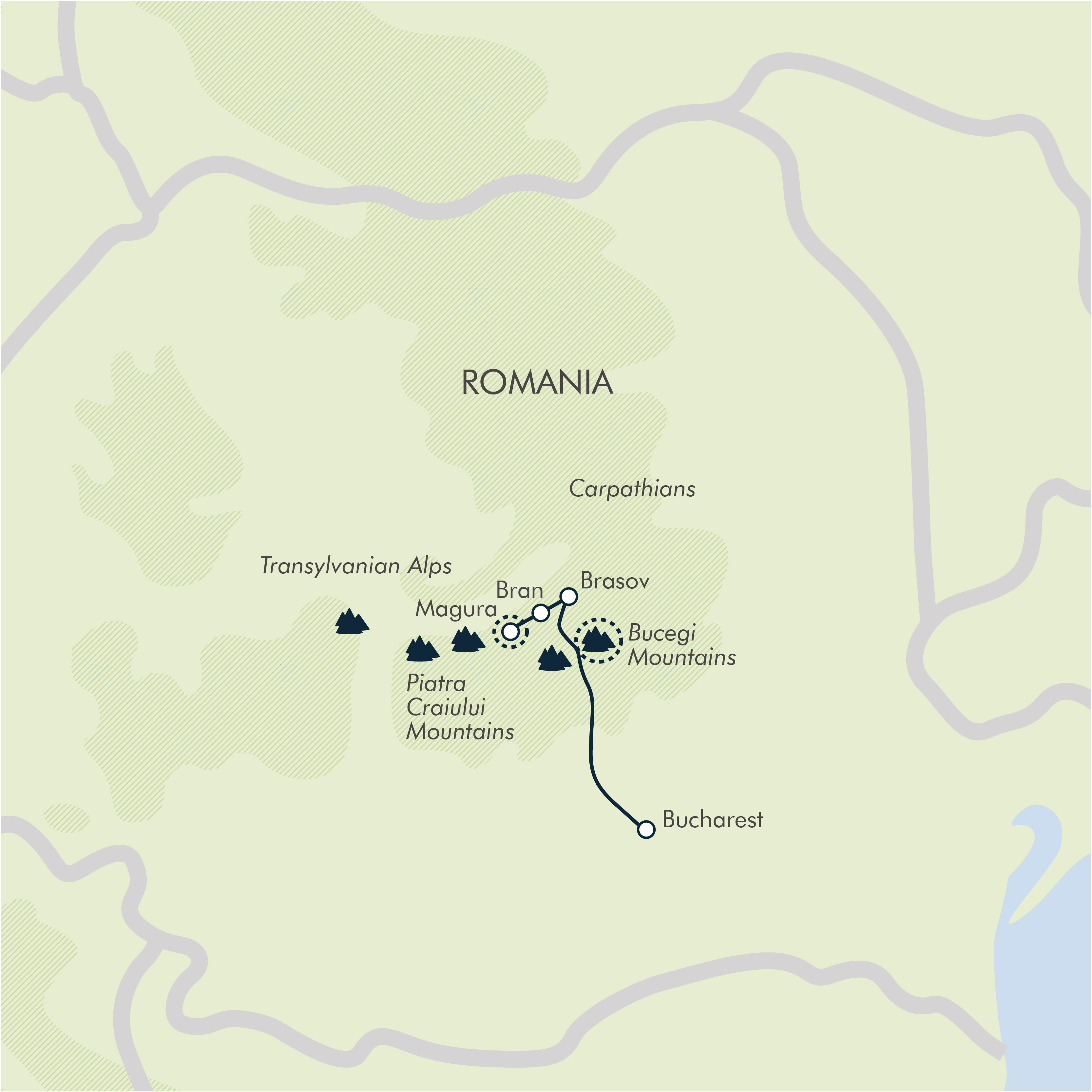 It is approximately 105mi (170km) from Bucharest Airport and takes around 3hr 30min to reach by road. Therefore, we highly recommend you join the group minibus transfer.