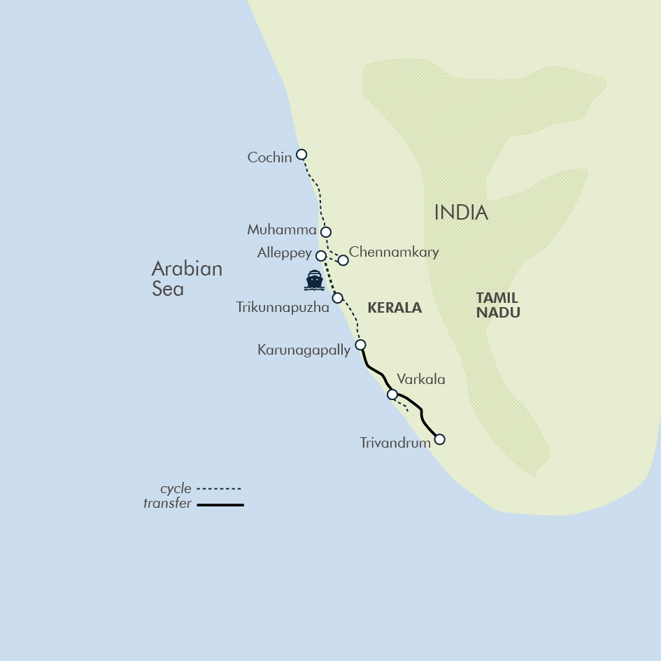 Kerala is seemingly tailormade for an easy-going cycling adventure: an idyllic coastline, tranquil backwaters, and a welcoming population always ready with a wave or a smile. On this guided adventure, we cycle from the old spice port of Kochi (Cochin) to the sweeping beaches of Varkala. That’s balanced with time to experience the local culture: sampling South Indian cuisine, spending a night in a village homestay and cruising the backwaters on a traditional houseboat.