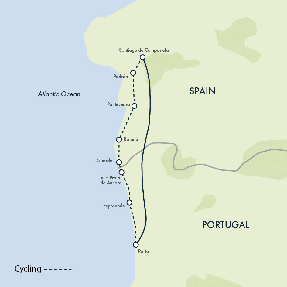 Following the Atlantic shoreline, the Portuguese Camino coastal route is perhaps the most scenic of the numerous pilgrimage trails that comprise the Camino de Santiago. See it for yourself on this culture-crammed cycling adventure. Starting in Porto, we follow the coast north, before crossing into Spain and biking to our goal: Santiago de Compostela, reputed burial site of the Apostle, Saint James. Along the way, we stop in a string of atmospheric coastal towns, while also collecting our stamps to receive our Compostela certificate in Santiago – proof you have completed this historic pilgrimage.