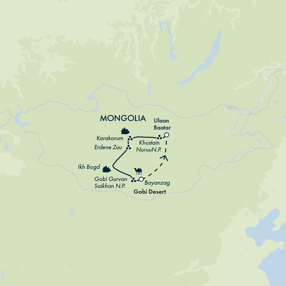 - Accommodation: 3 Classic nights (hotels), 9 Simple nights (traditional nomadic ger camps) - Travel by 4×4, bus and one internal flight - Group normally 4 to 16, plus leader. Minimum age: 16 - Special Naadam (ACMB/ACMC) and Eagle Festival (ACK/ACME) departures - see Dates & Prices