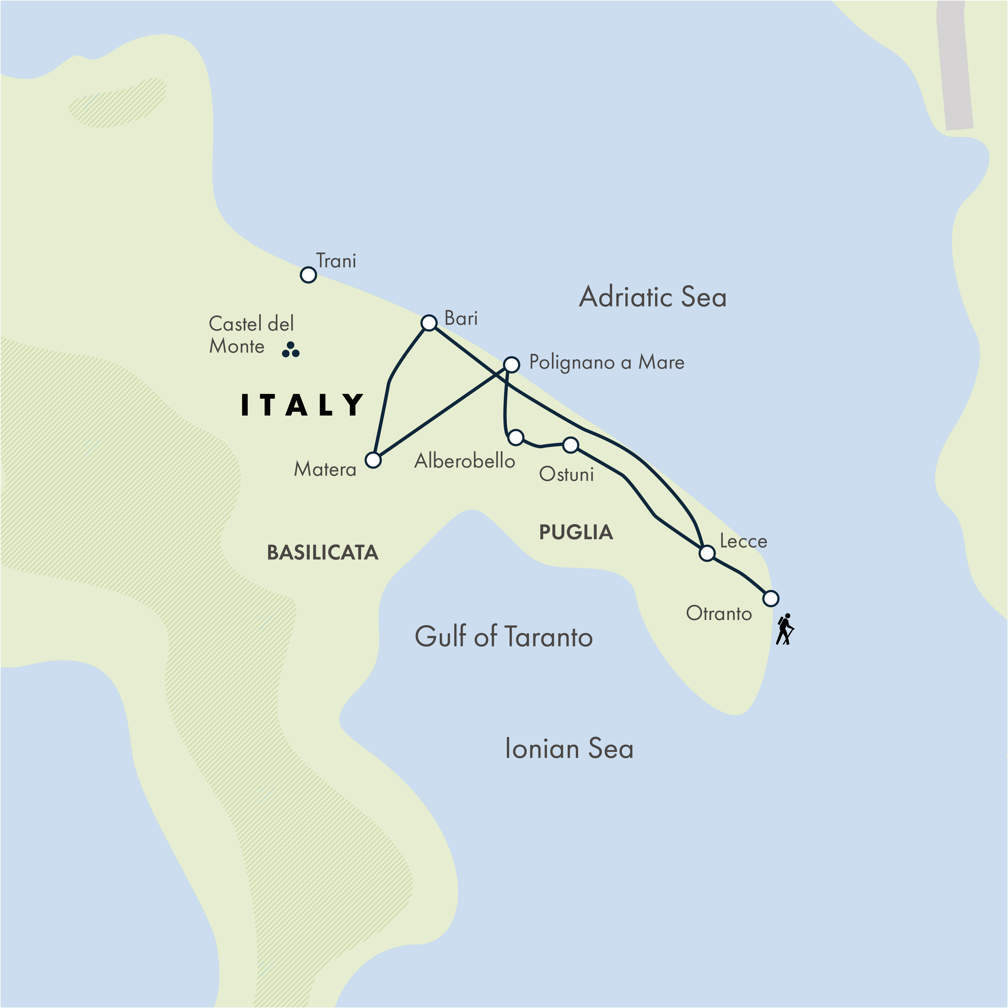 Puglia is the best of Italy crammed into the heel of the boot: twisted olive trees, World Heritage towns, full-bodied primitivo wine, and sun-kissed beaches. Experience it for yourself, spending two nights in the spectacular cave town of Matera, before wandering among the fairytale trulli homes of Alberobello. There’s also time to sample olive oil in a traditional Apulian farm, explore the white city of Ostuni, visit the medieval coastal town of Otranto, and end in baroque Lecce, known as the Florence of the South.