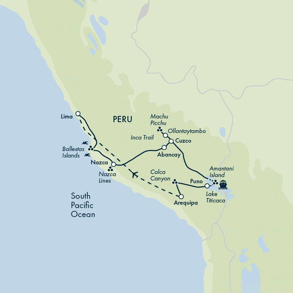 Combine a visit to the centuries-old Inca festival of Inti Raymi with a highlight-packed journey through the spectacular landscapes of Peru, including coastal desert, snow-capped Andean peaks, the altiplano and cloud forest. Along the way, we visit world-renowned highlights, including: the mysterious Nazca Lines; Machu Picchu, one of the New Wonders of the World; Lake Titicaca, where we spend the night in an island homestay; and the 9,843ft (3,000m) deep Colca Canyon. We also encounter traditional culture, condors, llamas, and a warm welcome from the Peruvian people.