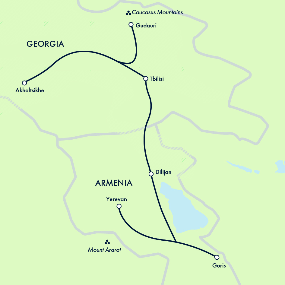 Journey through the Caucasus on an adventure that blends grand landscapes with the local experiences that make travel memorable. The big moments leave their mark: gazing towards Mount Ararat, exploring monasteries carved into rock or set above gorges, and crossing a hanging bridge into the cave village of Khndzoresk. Just as memorable are the experiences in between, from making traditional lavash and listening to a master duduk player to sharing meals shaped by local traditions. With a dedicated guide in each country, you gain a deeper understanding of the places you visit – and a few stories you wouldn’t hear otherwise.