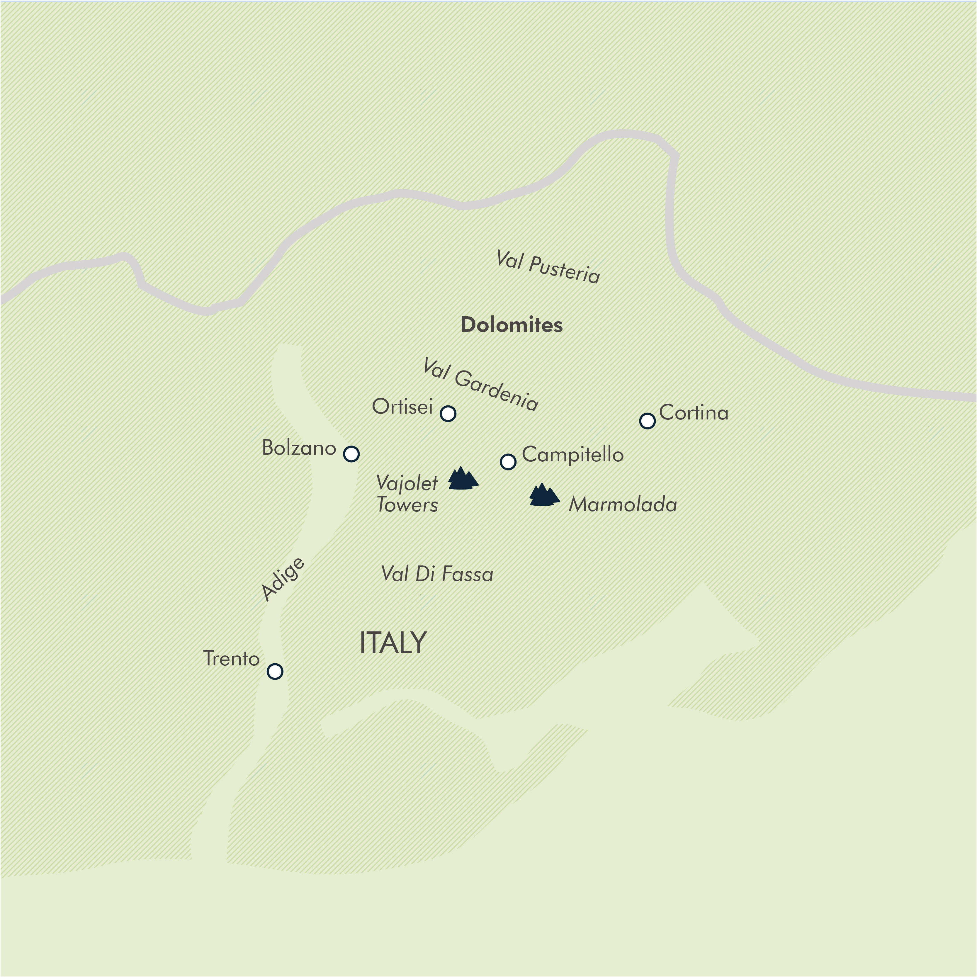 Join our expert mountain leaders and a small group of like-minded adventurers to hike the most scenic trails in the Dolomites. Based at a family-run hotel in the lovely village of Campitello, we walk among jagged limestone peaks and through lush valleys, before returning home for a warm welcome and an Italian feast. With excellent chairlift, cable car, and bus links, we can access a huge variety of routes, allowing us to offer two difficulty levels on each walking day: Activity Level 3 (Moderate) and 5 (Challenging). Our expert tour leaders may alter the itinerary based on weather conditions and group ability to ensure everyone’s enjoyment.