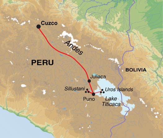 Journey across the spectacular high altiplano to Lake Titicaca, the world's highest navigable freshwater lake (3800m). Explore its waters by boat and visit the descendants of the Uros Indians who live on floating reed islands, and are also known for producing fine textiles. Back on the mainland, we visit the pre-Incan site of Sillustani, comprised of burial towers with fantastic views over the region.