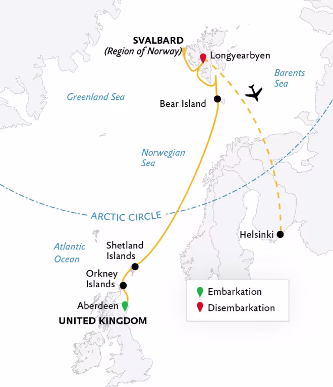 - 14 nights on the ship, 1 night hotel in Aberdeen, 1 night hotel in Helsinki - Expedition cruising in comfortable conditions