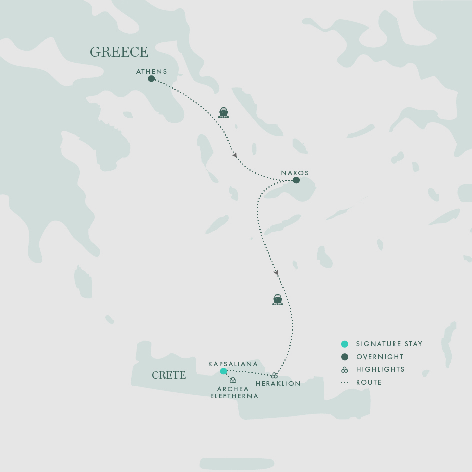 Where myth and memory entwine, Greece’s story unfolds. Guided by your hand-picked Signature Guide, you’ll journey through the ages, starting among the sacred temples of Athens and ending on Crete, the birthplace of Zeus. Along the way, it’s our encounters with mortals – lyre players, wine producers, and gifted artisans – that bring the true Greece to life. A story etched into marble and passed through time. Venture to the very heart of each destination on our Signature Collection, where every journey is shaped by our unrivalled local connections and insider expertise. Step beyond the ordinary with private invitations, rare encounters, and experiences few will ever share. So when someone says, “I’ve been there,” you’ll simply smile, knowing you’ve experienced it differently. Signature Experiences: Cook alongside a Naxian family, preparing cherished island recipes in their home kitchen, each dish paired with local wines and stories of the land Dine and dance at Elaiolithos Estate during a private folklore evening, where live music and seasonal dishes celebrate the rhythm of island life Explore ancient Eleutherna, uncovering layers of myth and archaeology, before shaping your own ceramic piece in a hilltop studio in Margarites Spend a day at Veggera Farm, a haven of Cretan hospitality. Join your hosts in harvesting, baking, and cooking over wood fire; depending on the season, learn the art of beekeeping or gathering grapes from the vines Signature Day: Experience our distinctive Signature Day, choosing between a full-day catamaran cruise, marble or mosaic carving, e-biking along Naxos’ coast, cheese making with local farmers, or a traditional loom weaving class Signature Stay: Experience elevated Cretan hospitality at Kapsaliana Village Hotel, a boutique retreat within a restored 18th-century village Signature Guide: Let your hand-picked Signature guide lead you to the country’s soul — sharing their home, heritage, and heart