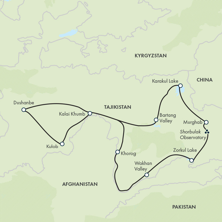 The Pamir Highway: Central Asia’s greatest road adventure in Tajikistan. Travelling in 4x4s, we follow this rugged mountainous route through the remote Pamir range, discovering an area along the Afghan border, much of the time alongside the Panj River, that only the most adventurous ever explore. On the way, we visit the ruins of Zoroastrian castles and shrines and see a Buddhist stupa. We head off the main highway to go even deeper into the country, encountering lands where the language changes from one valley to the next. To make sure we see as much as possible, we’ve designed our tour to roughly follow a figure of eight, meaning we mostly avoid retracing our steps.