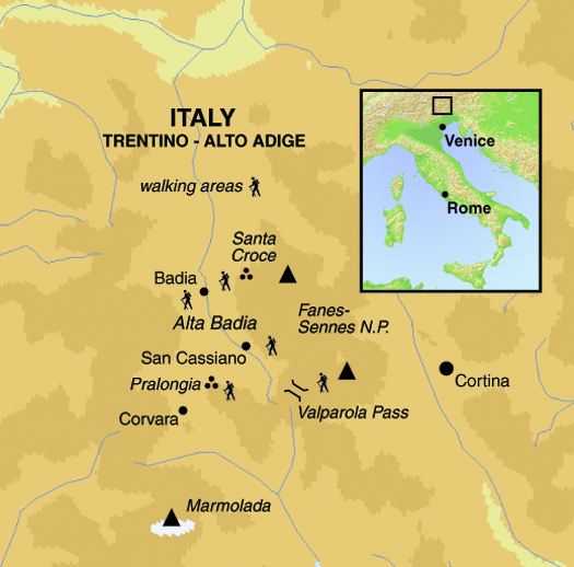In the heart of the Italian Dolomites, the Alta Badia region boasts some of the most spectacular alpine scenery as well as a reputation for excellent cuisine. The village of San Cassiano is no stranger to either and sits just 15km, as the crow flies, due West of Cortina d'Ampezzo (or 30km by road and the Falzarego Pass). Around 500m in altitude above the village lies a large area of beautiful alpine meadow, dotted with traditional wooden mountain huts and the most amazing panoramic views. At some points you have a 360-degree vista that spans from the Austrian Alps to the North to the Marmolada range to the South (the highest peaks in the Dolomites), with the Fanes Natural Park to the East and the Sella mountain range and Gardena Pass to the West - all stunning views in their own rights but when combined it's almost mind-blowing!